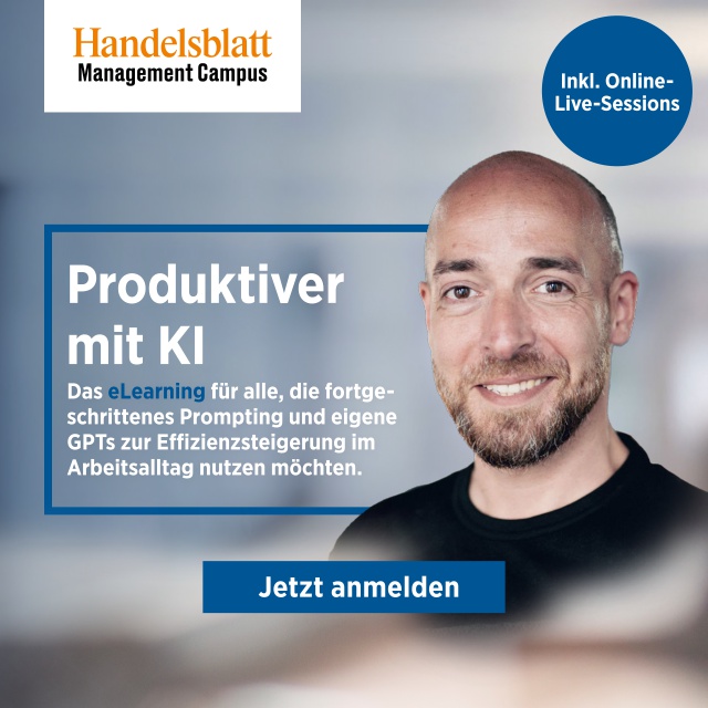 Schauen Sie sich gerne auch die weiteren Kurse und Masterclasses zu KI vom Handelsblatt Management Campus an, auf die es für Marketing Club Mitglieder ebenso 20% Rabatt gibt.